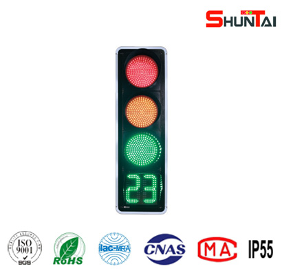 倒計時信號燈出光面直徑有300mm和400mm,光源采用進口超高亮度LED,具有壽命長、功耗低、外觀新穎、倒計時時間顯示完整等特點。