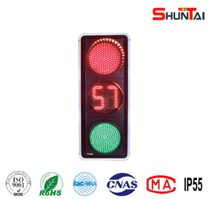 倒計時信號燈出光面直徑有300mm和400mm,光源采用進口超高亮度LED,具有壽命長、功耗低、外觀新穎、倒計時時間顯示完整等特點。