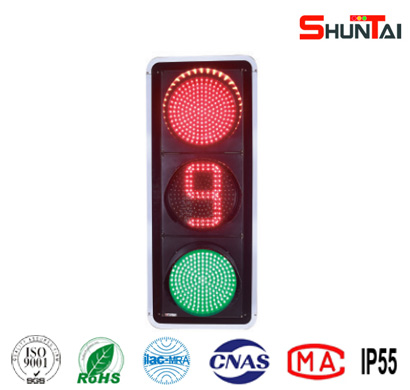 倒計時信號燈出光面直徑有300mm和400mm,光源采用進口超高亮度LED,具有壽命長、功耗低、外觀新穎、倒計時時間顯示完整等特點。
