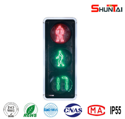 人行信號燈出光面直徑有300mm和400mm,光源采用進口超高亮度LED,具有壽命長、功耗低、外觀新穎等特點。