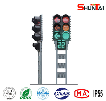 雙排組合式一體化信號燈采用國標方向指示信號燈+國標機動車信號燈+倒計時顯示器整體嵌入式設計。
