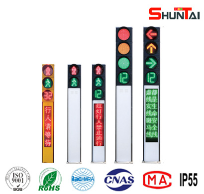 可嵌入式安裝行人過街語音提示器和戶外表貼LED顯示屏。側面可外掛人行燈,實現雙燈或三燈共桿。